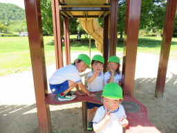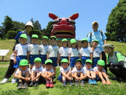 ○日本一の獅子頭を背に、大型遊具でたくさん遊んで