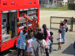 ○未就園児教室に参加した、子どもたちも一緒に消防自動車を見学しました。